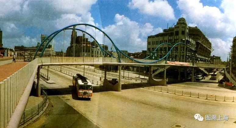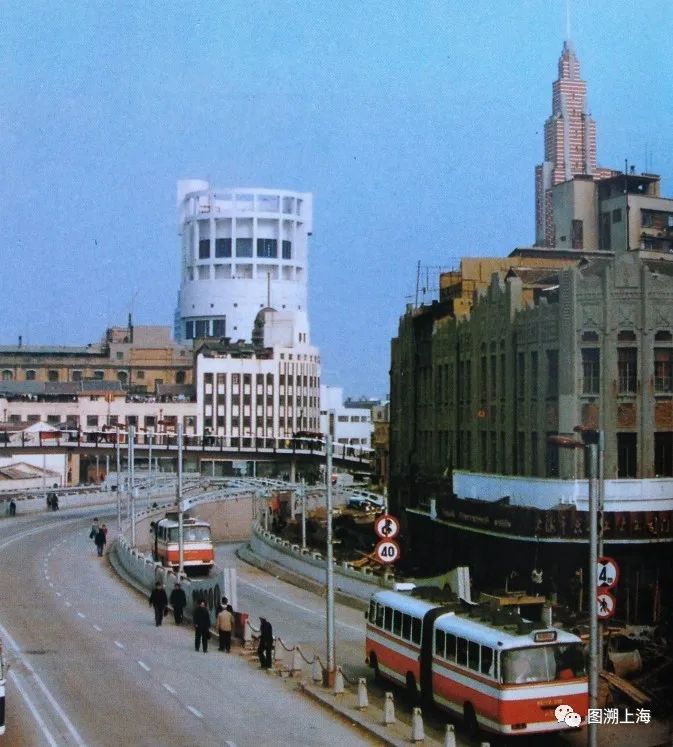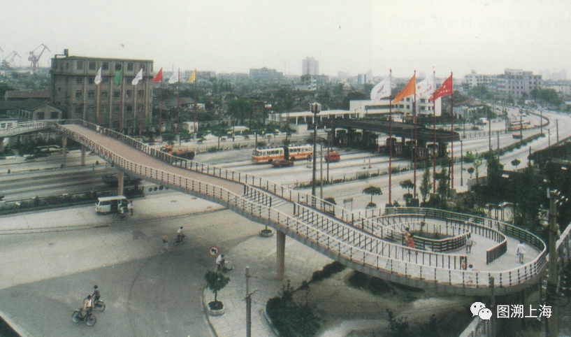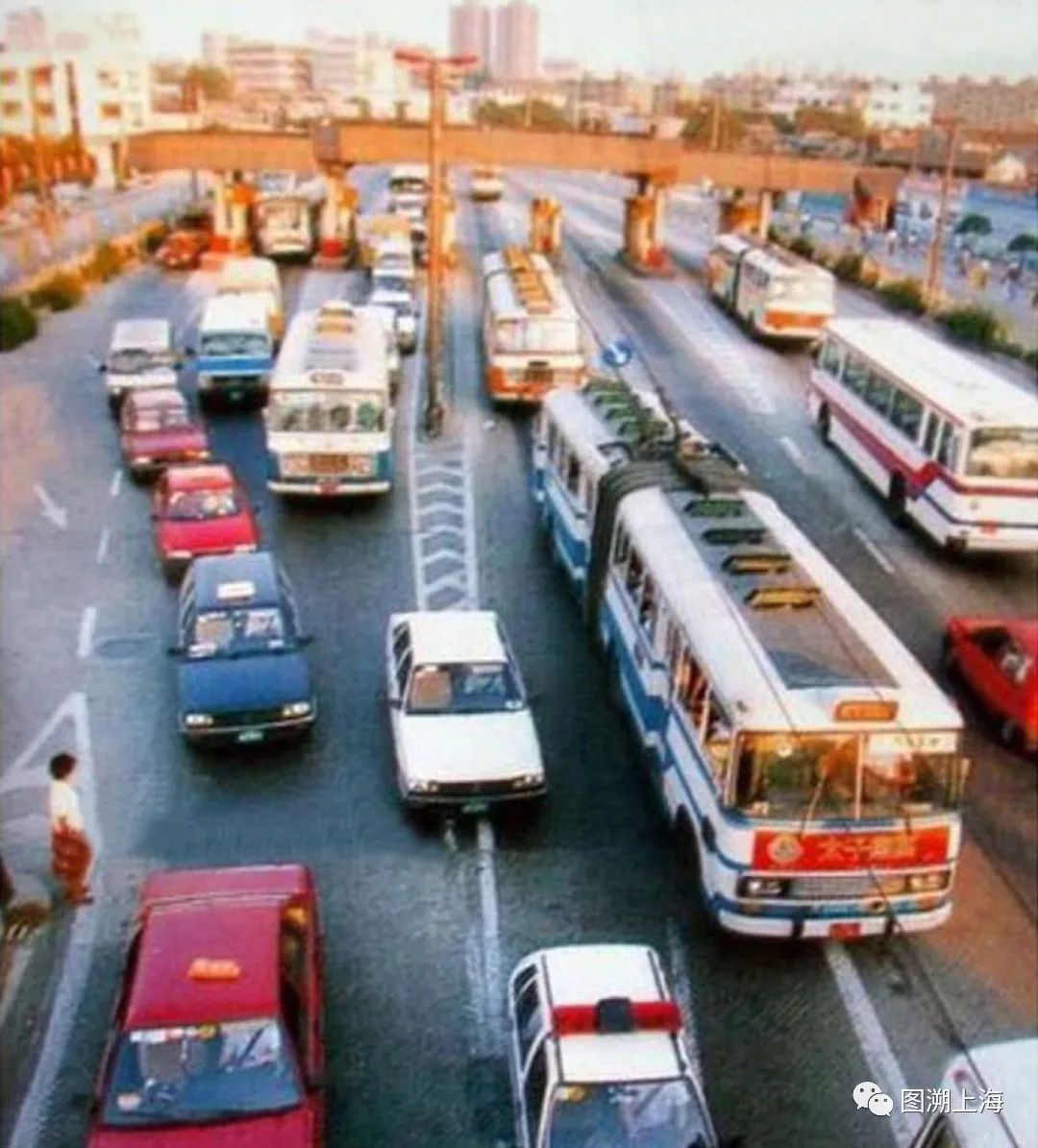 1990年代初延安东路隧道浦东出入口,可见电车架空线