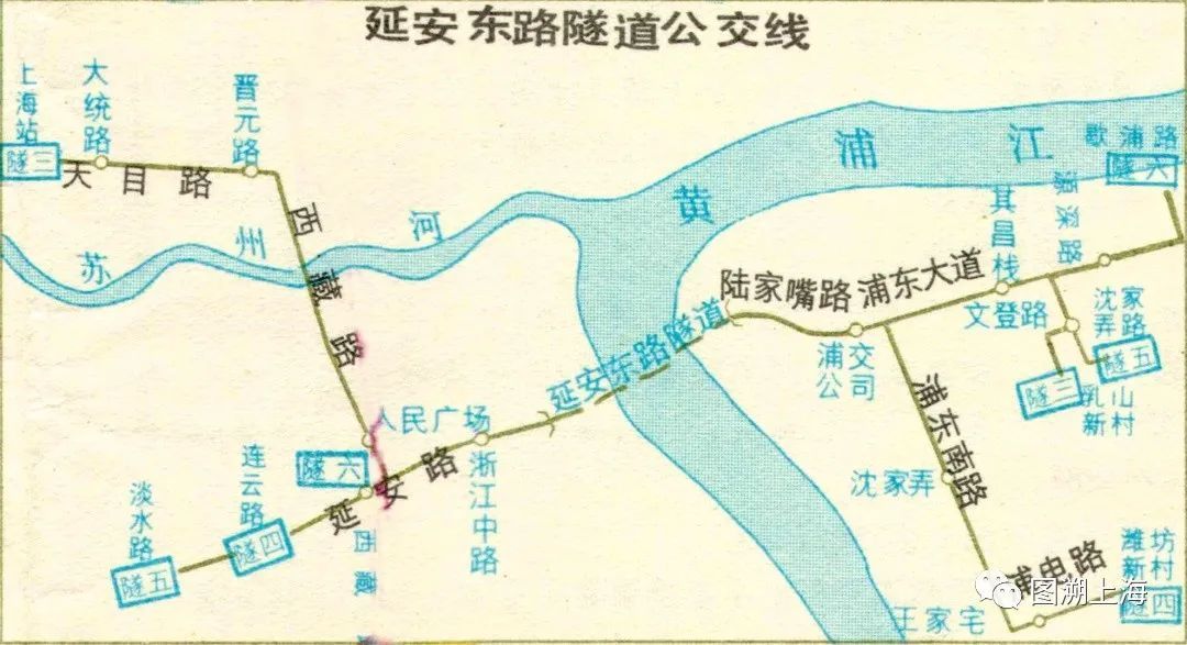 1990年4月30日,市公交总公司第一电车公司开辟隧道五线无轨电车线路通车。自浦西淡水路经延安东路隧道至浦东梅园新村,线路长7.26公里,通用隧道专线月票。隧道五线是世界上第一条通过江底隧道的无轨电车线路。