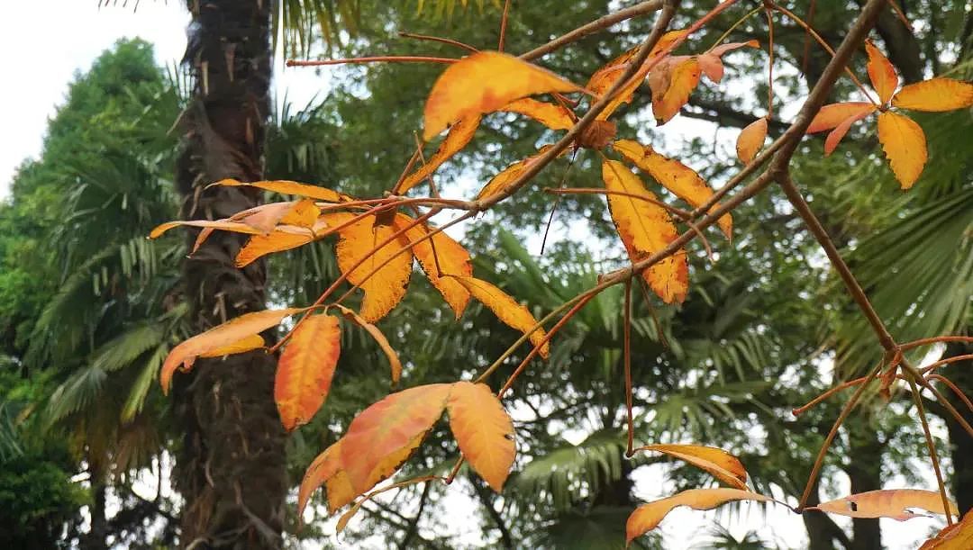 这个阶段变色的有银杏、鸡爪槭、红枫、乌桕、海滨木槿、肉花卫矛、五叶地锦等,随后有黄连木、盐肤木、无患子、枫香等。