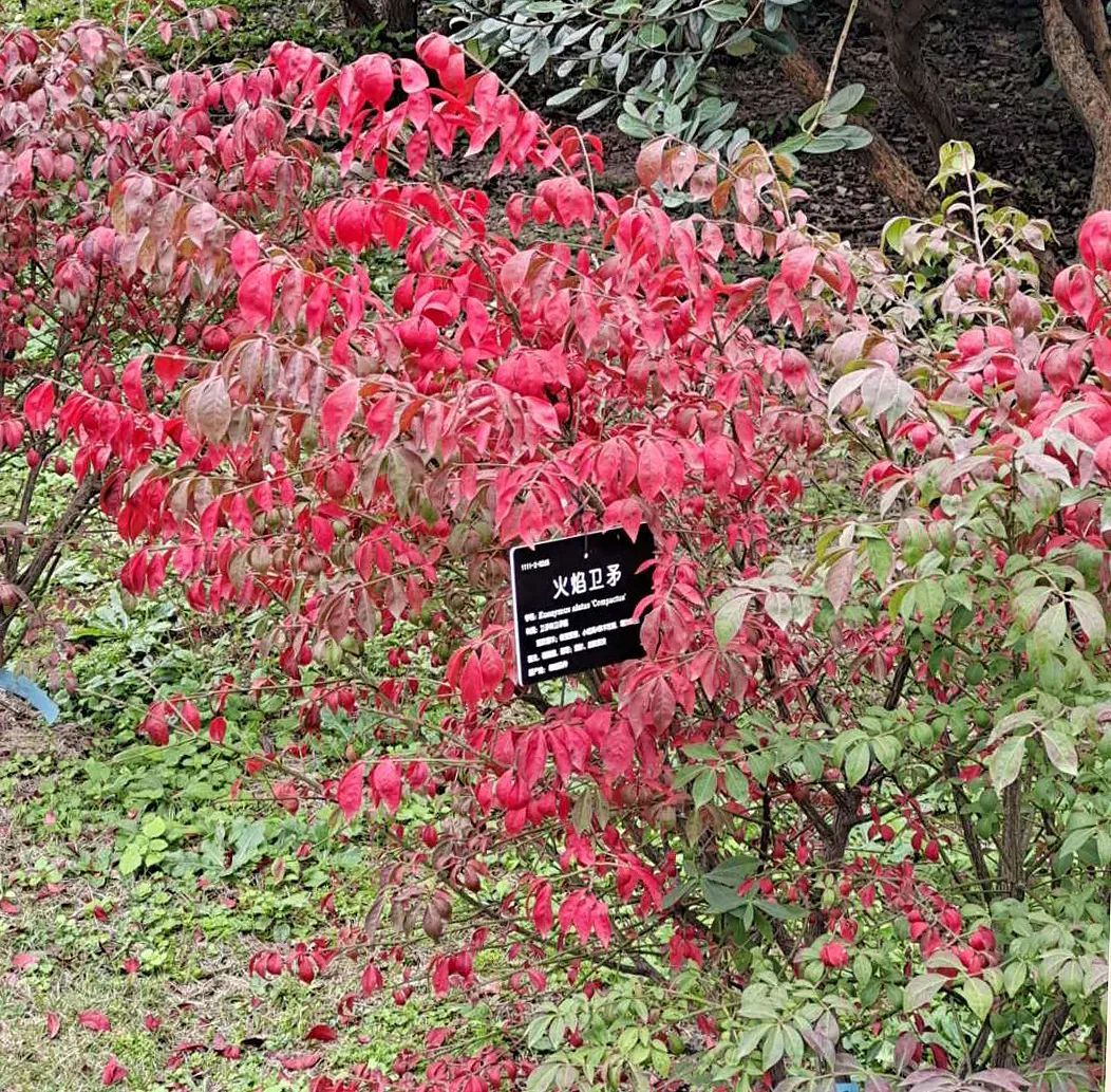 “火焰”卫矛是近几年来渐为流行的秋色叶树种,它的变色期比别的树种稍早一些,11月就已经可以观赏到满树红叶,极为醒目。