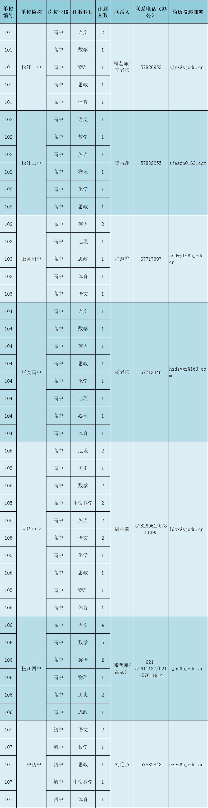 区教育局刚刚发布《2021年上海市松江区教育局下属事业单位第一批次教师招聘启事》,无论你是应届毕业生、还是在职教师,只要符合条件都可以来报名应聘。