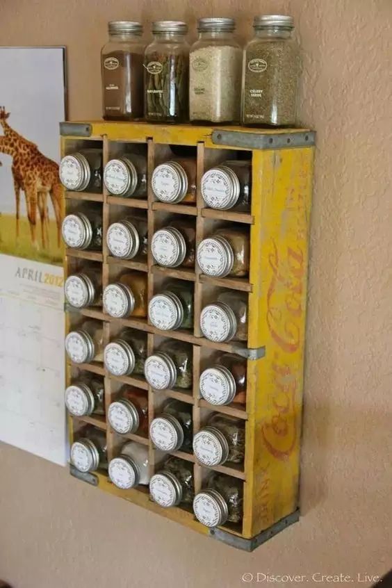 把瓶身洗涤干净,瓶盖涂上自己喜欢的颜色,然后用置物架将它们整齐的排列起来,在瓶盖上标上里面的物品名称~大功告成啦!