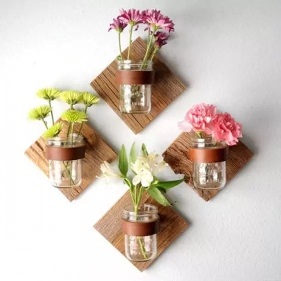 墙壁上空落落的,想在墙上装饰养花的朋友,玻璃罐头瓶就是最好的选择啦。