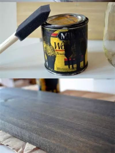 准备好几个罐头瓶、一块木板、刷木板颜色用的漆、固定罐头的铁环。