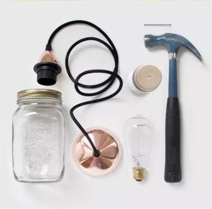准备好罐头瓶、灯头、连接线、顶上的背板。