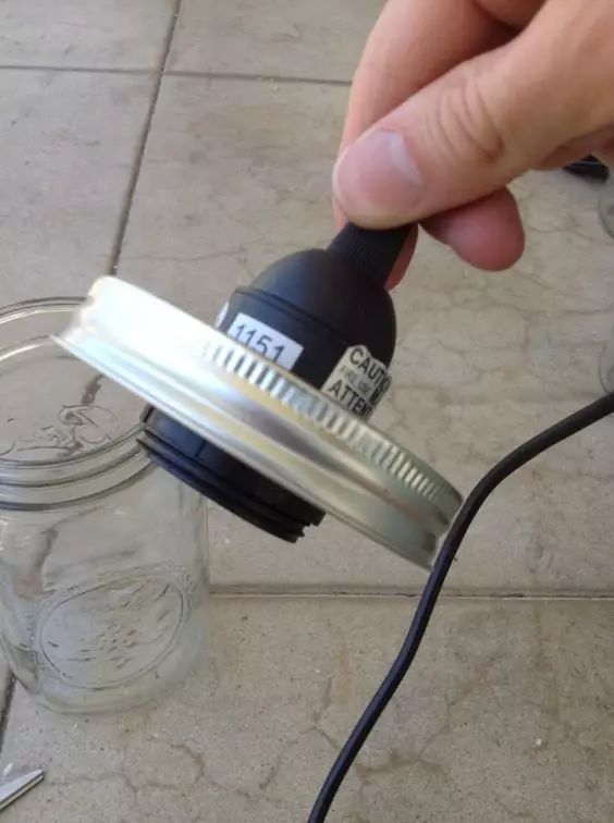 将所有接好线的罐头瓶组成一组,接到背板上,装上灯泡。因为普通白炽灯泡容易发热,所以放在玻璃瓶的,最好选用不发热的led灯泡。