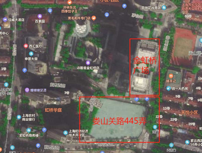 娄山关路445弄综合项目位于天山社区,东至娄山关路、南至紫云西路、西至虹桥华庭小区、北至金虹桥国际中心,由长宁区体育局牵头完成立项工作,并开展房屋征收。