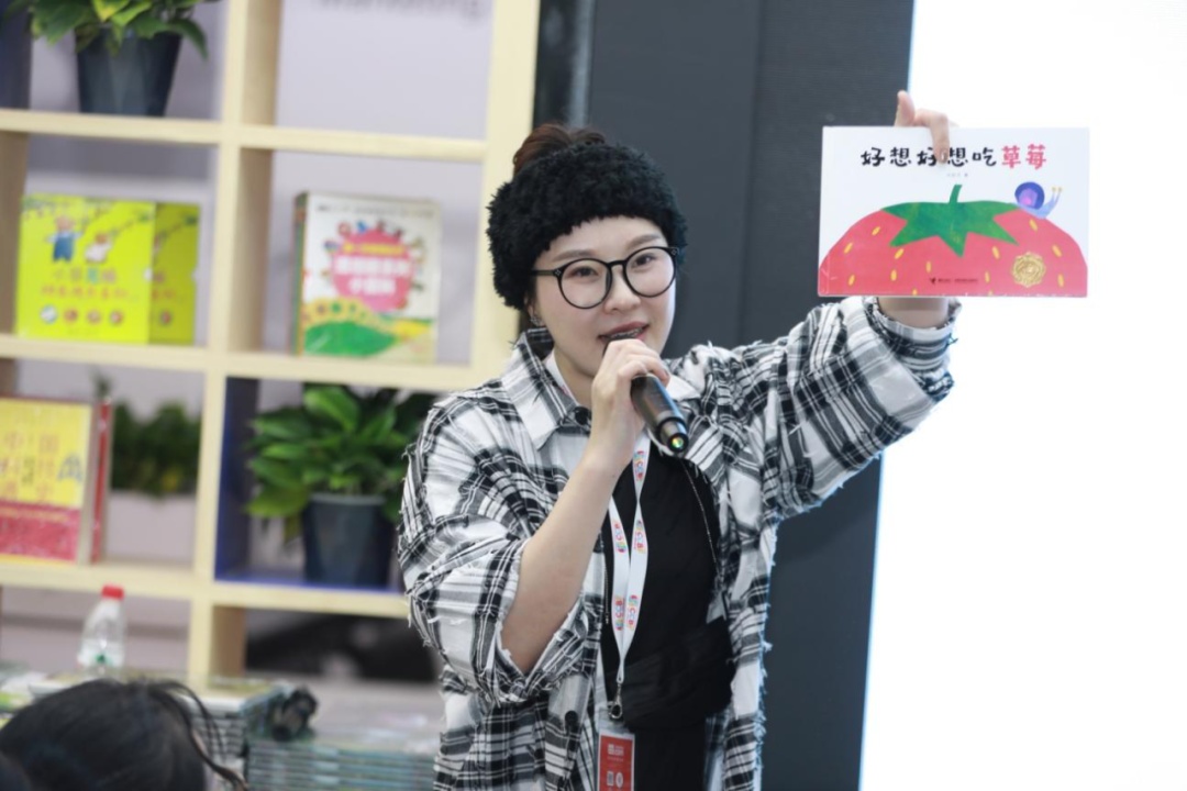 这样的绘本阅读方式,让家长们学到了许多“招数”,大家纷纷拿起手机,把这段深度阅读的过程录制下来。除了推荐和共读《谁偷吃了我的柿子》外,邹蓓蓓还向亲子家庭推荐了刘航宇的《好想好想吃草莓》,这本同样面向低幼儿童的绘本,受到了现场读者的喜爱。