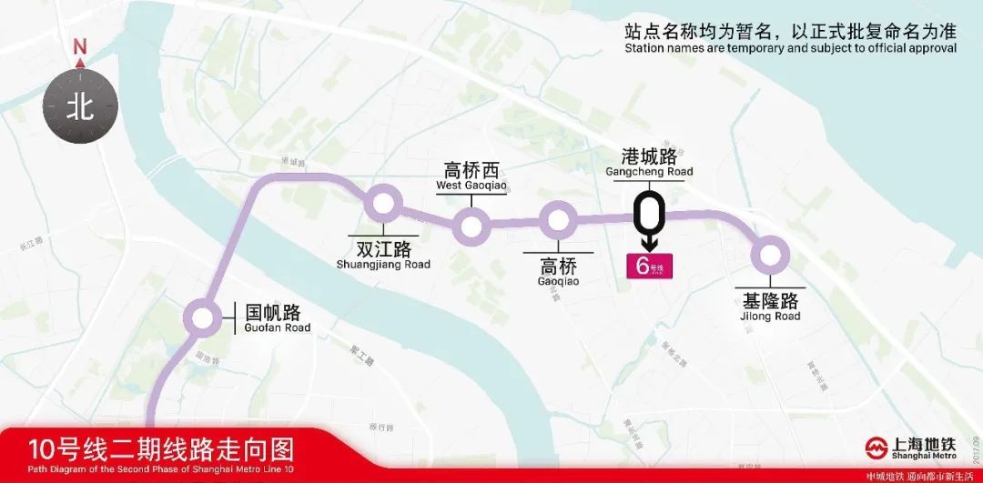 10号线是国内首条采用全自动无人驾驶技术的大容量轨道交通线路,线路穿越中心城区、衔接虹桥交通枢纽。二期工程是目前运营的10号线一期的东延伸段,西起已建新江湾城站,东至外高桥保税区基隆路站,全长约10公里,共设国帆路站、双江路站、高桥西站、高桥站、港城路站、基隆路站6座车站。