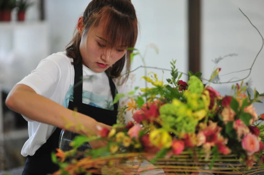 花艺项目是根据相关理论和技术设计鲜花、叶子、植物和配饰,合理安排工序来整理花束,同时进行选材和护理的竞赛项目。比赛中对选手的技能要求主要包括:使用修剪好的花和枝制作花艺作品;挑选并处理花、叶、枝、容器、装饰配件和包装材料;具有创新性与艺术性;了解如何使花朵尽可能保持新鲜;了解流行趋势对花艺的影响。