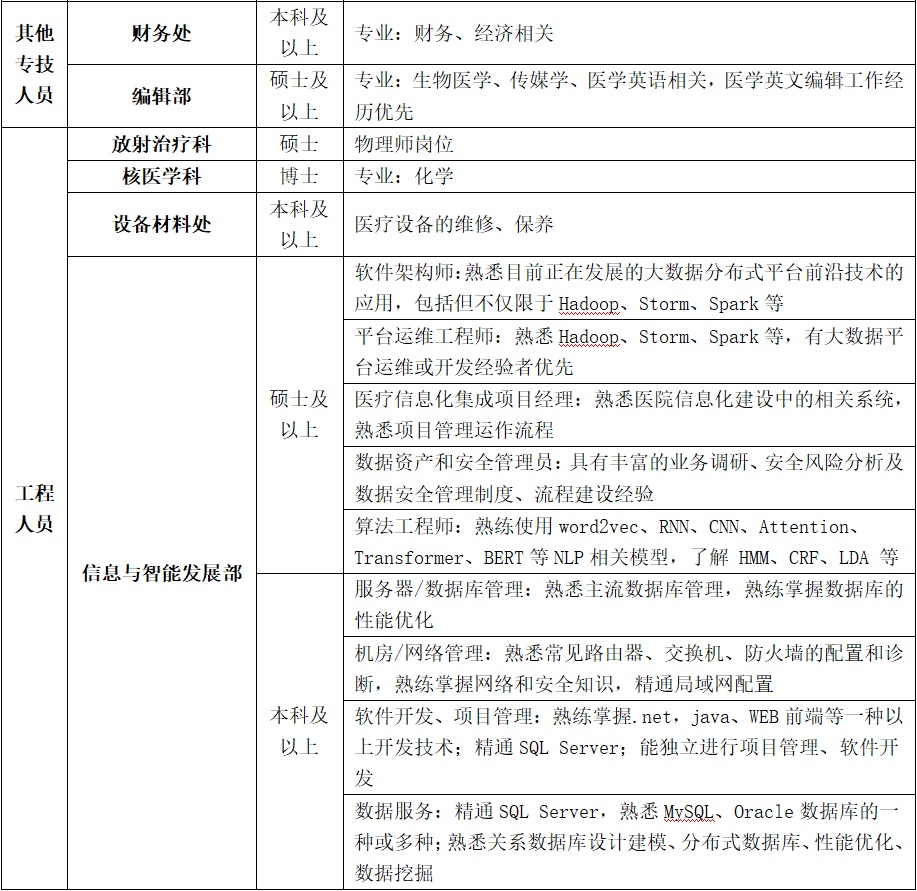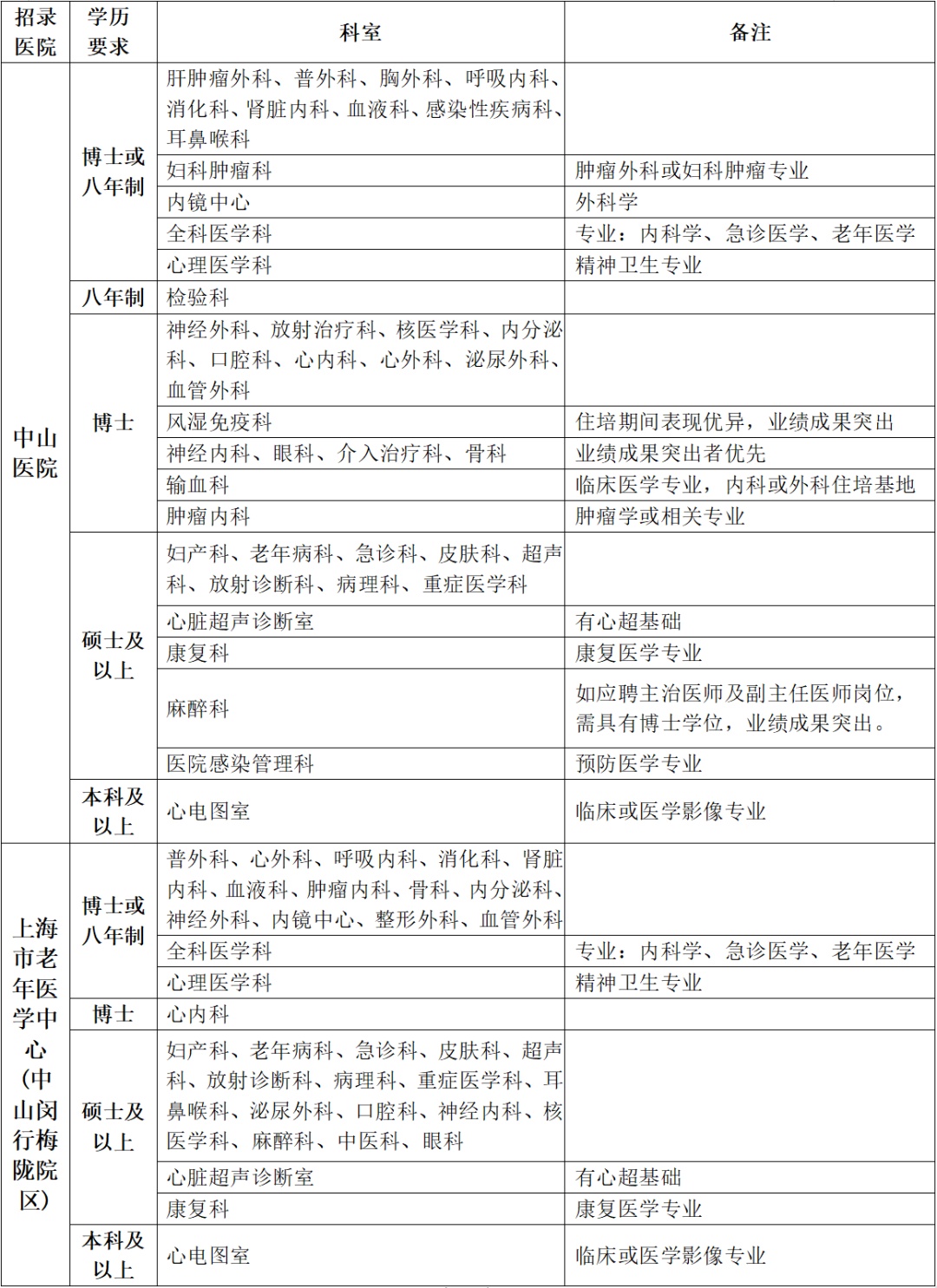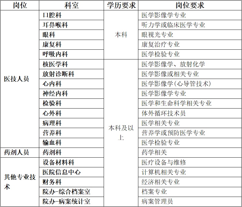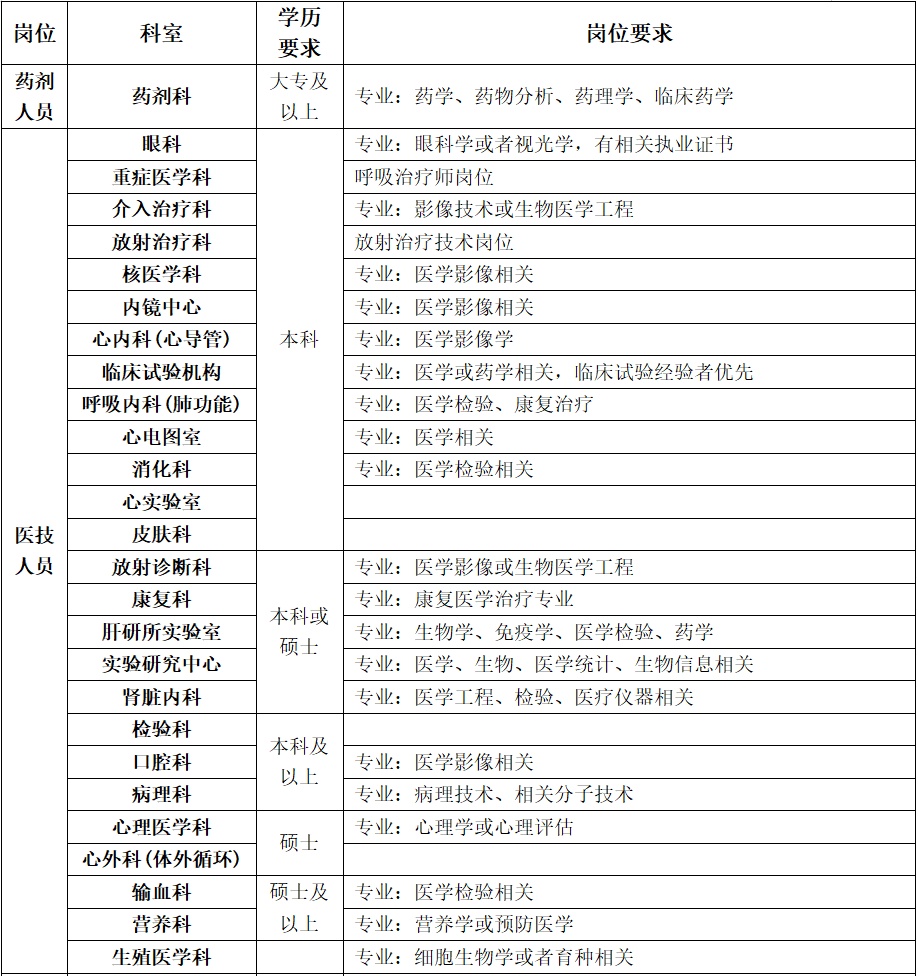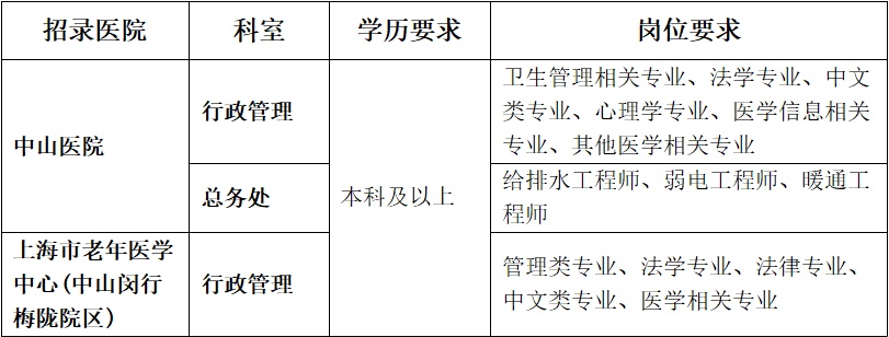 中山医院招录科室及岗位: