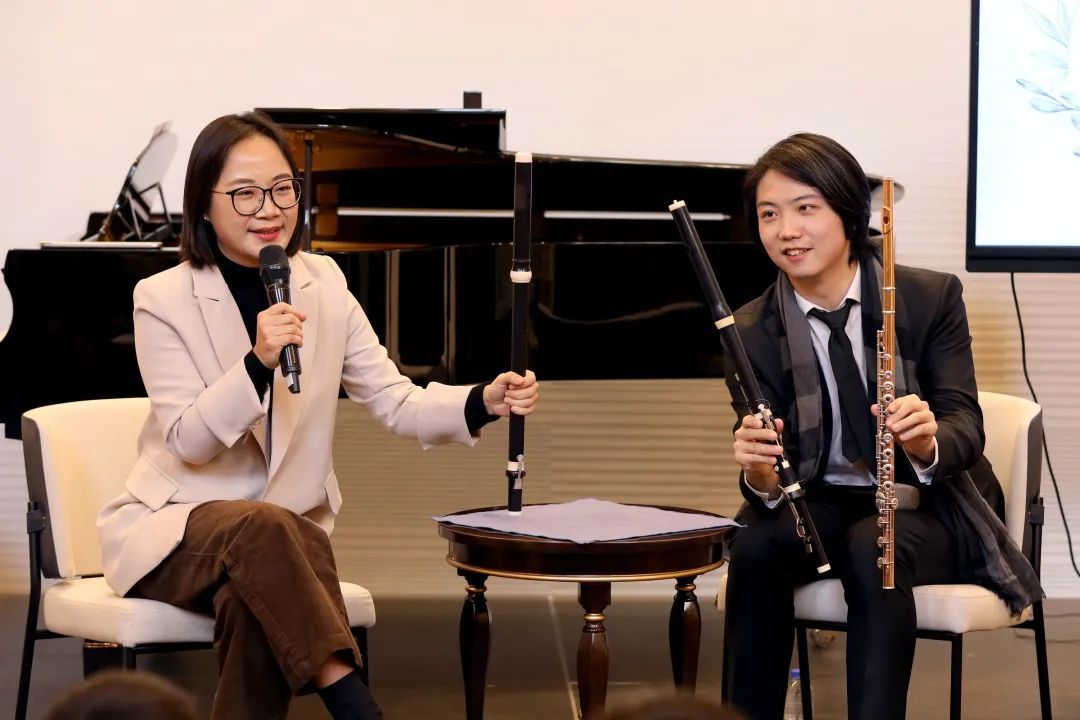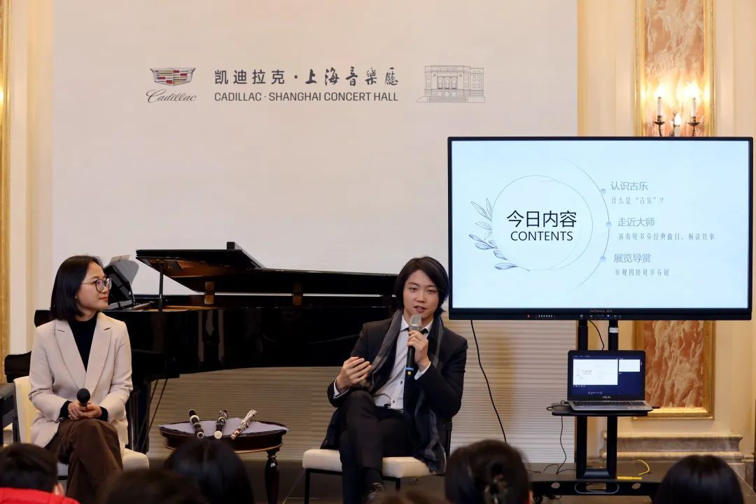 两位艺术家以各自学习古乐、演奏古乐的经历入手,向大家普及了古乐在乐器构造和材质、演奏手法和音色高低等方面与现代乐器的区别。