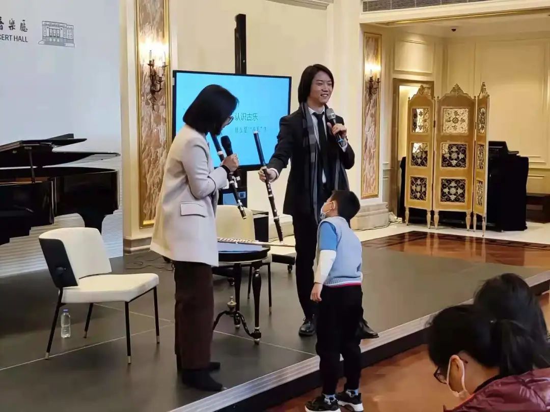 沈辰分别用巴洛克长笛、古典长笛和现代长笛吹奏,通过音色让会员直观地辨别不同长笛之间的区别。活动现场引起了不少小朋友的兴趣,好奇懵懂的孩子们凑上台前仔细端详不同长笛在外观上的区别。