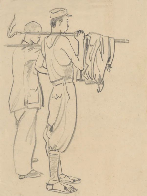 同时,他也画了一批战地速写,以纪实的手法把前线战士和志愿者的身影真实地记录下来。两种完全不同的艺术表现为后人留下了难以忘却的抗战印记。