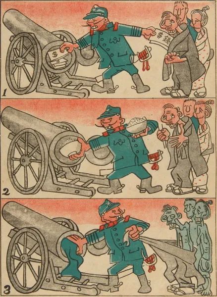 抗战漫画是张乐平漫画艺术中不可或缺的重要部分。抗战全面爆发后,他发起成立上海漫画界救亡协会,参加漫画宣传队,辗转沪、苏、鄂、皖、浙、湘、桂、赣、闽、粤等地,创作出一大批漫画作品,用夸张的手法揭露鞭笞日本侵略者的野心与残暴,向大众吹响了团结战斗的号角。