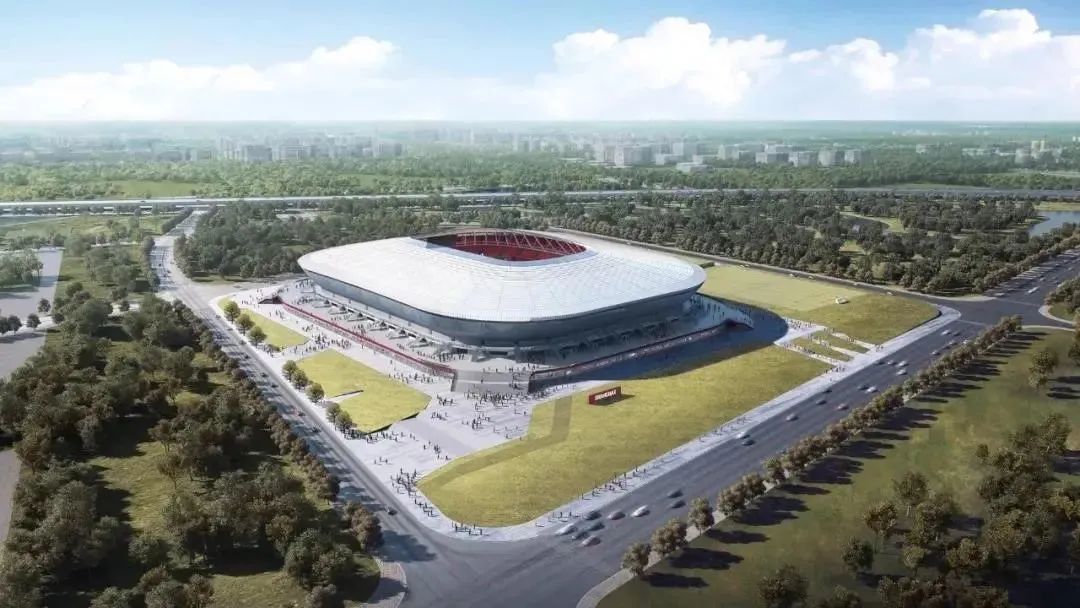 定位于大陆首个按照fifa国际a级比赛要求设计的专业足球场,预计今年4月正式竣工。固定坐席数为33765个,第一排观众座席距离球场只有10米!在足球场西侧还有两片室外训练场地。