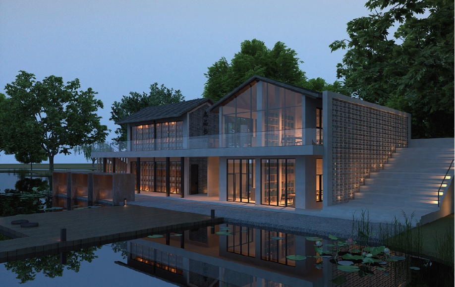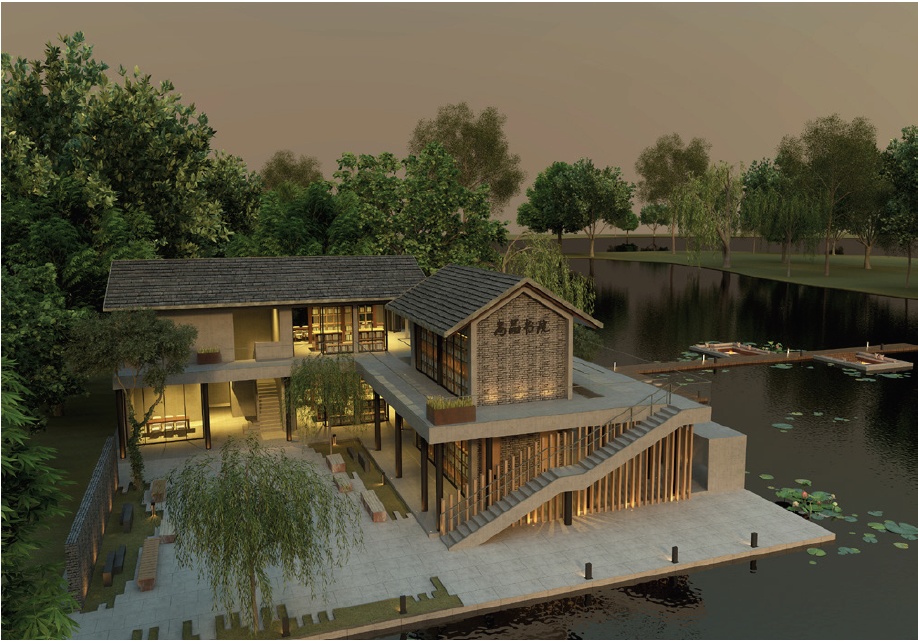 尚品书院所在地原是水库村旧谷场仓库,在原有的基地面积上加盖并改造而成,采用传统江南民居建筑风格,使建筑与水库村的水乡风情相融。书院坐落于水库村荷花塘畔,朵朵荷花点缀其中,木制栈道延伸至荷塘深处,成为人们亲近自然、闲情逸致的好去处。为了使传承与创新在此共存,书院里设有丰富的藏书和休闲阅读空间,也有能兼容国学培训、茶道体验、分享讲座和会议等多功能空间。
