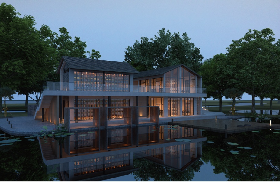 尚品书院一层设置室外庭院,二层设有回廊公共空间,为村民增加更多的共享活动场所;外部设置了阶梯式观景休息平台、书箱式休闲区、下沉式休闲区,创造了丰富的观景体验和更多的休憩空间;书院试图通过空间的组合与合理利用来引导村民回归更多的邻里文化,为打造最美乡村而努力!