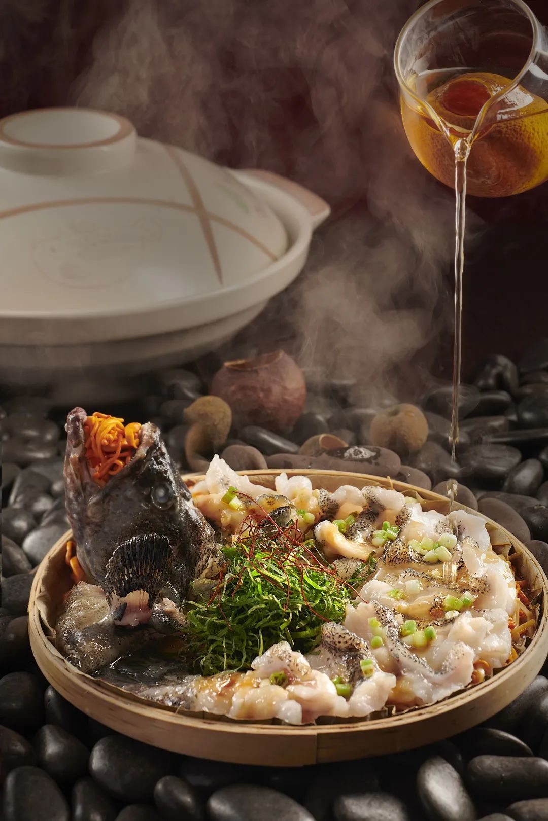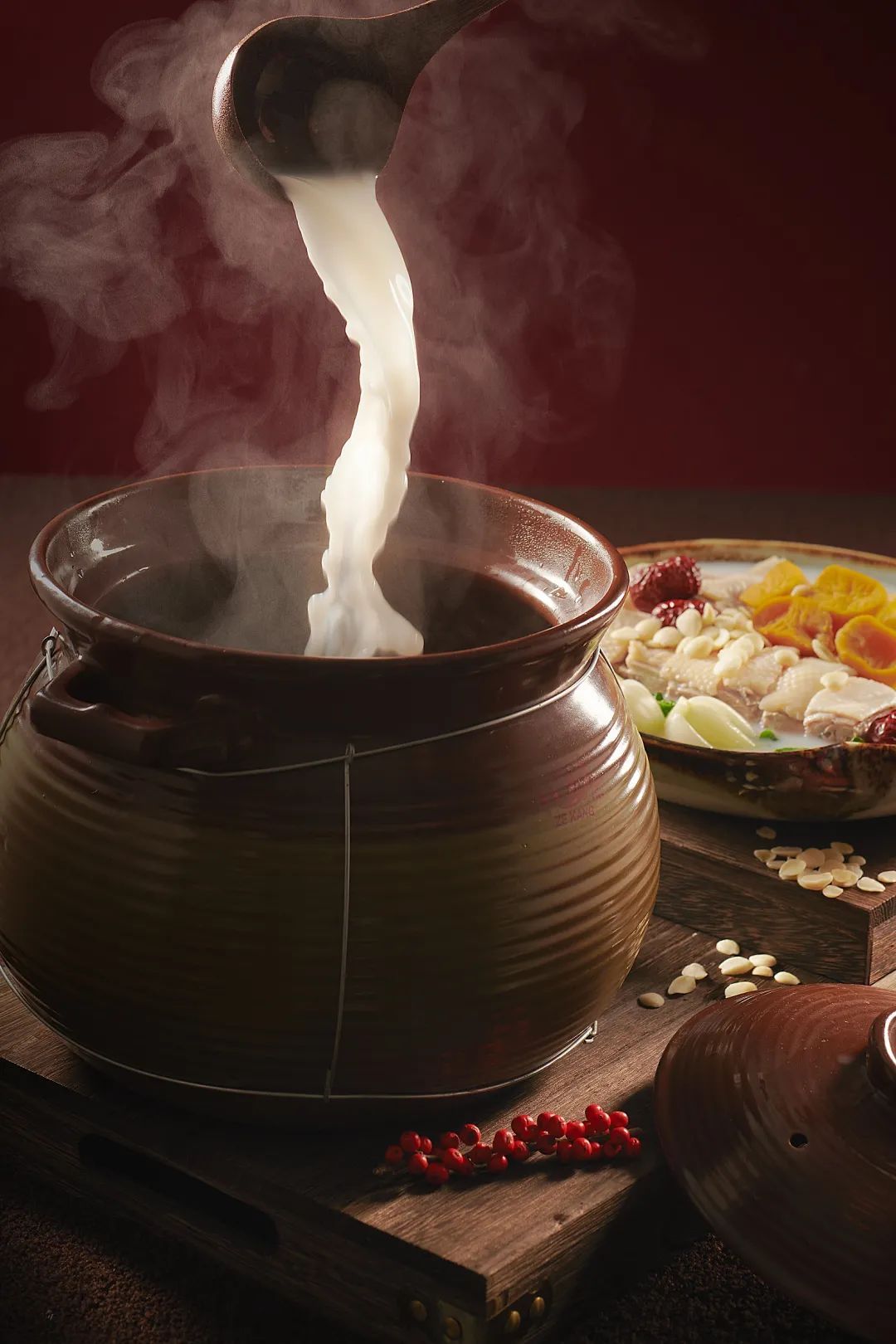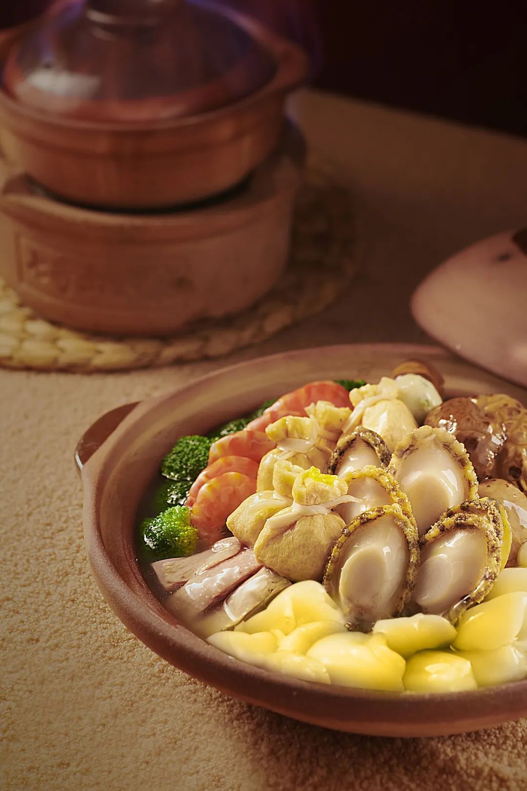 上席时,煲内食材仍继续沸腾