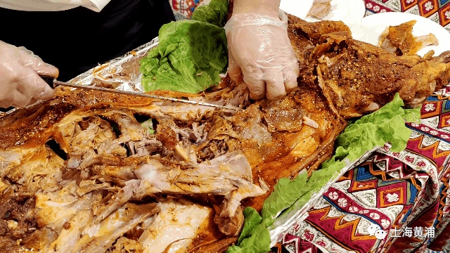烤全羊是这里每天的压轴好戏,选用二十斤左右的小羔羊,用秘制调料腌制六小时左右。把羊放入烤炉,慢火烤两个半小时左右,中间需要不停地刷油和秘制调料。