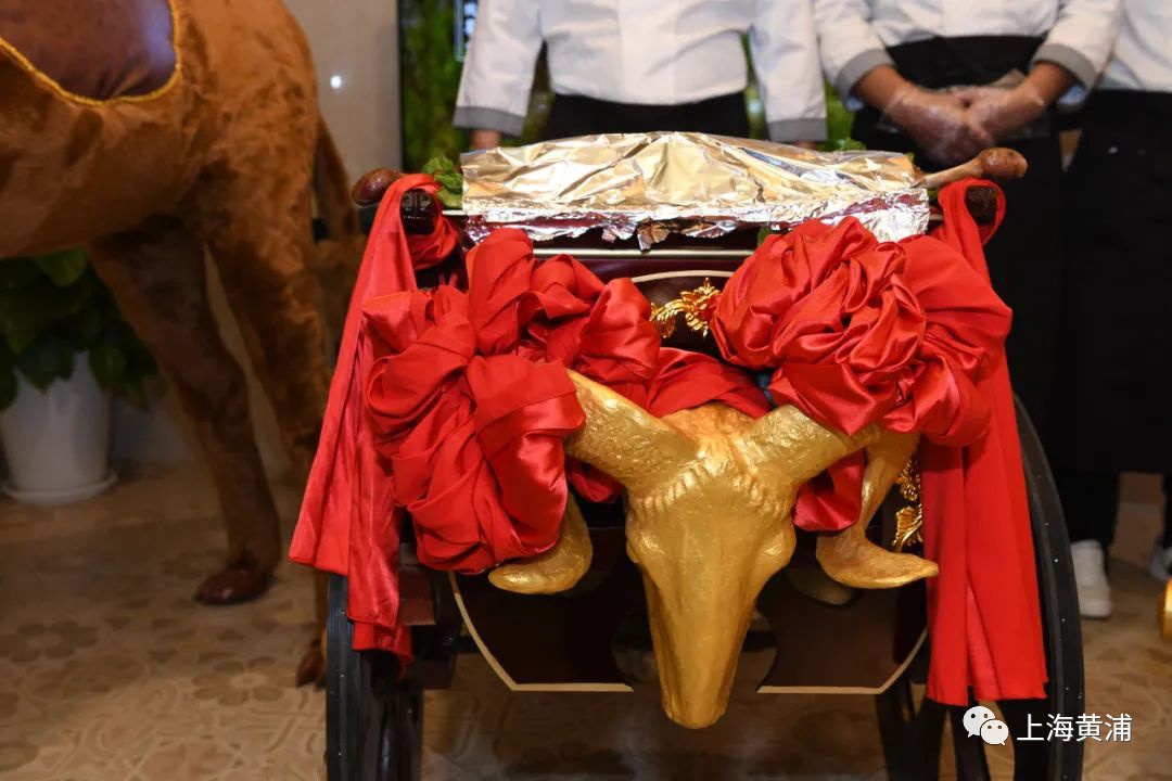 吃烤全羊的过程颇具仪式感,将烤好的羊推到餐厅中央。烤全羊被铺平展开在盘中,颜色红亮,秘制调料的香气充满大厅,食客们纷纷聚集围观。大厨会随机邀请一名食客上前开羊,手持片刀从羊脖颈处插下,随后持刀向后划至尾部即告完毕。