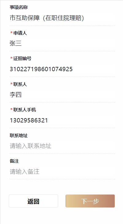 点击界面底部的“立即办理”按钮即可开始事项办理流程。首先,填写基本信息,用户实名登录后,该表单会自动获取用户信息,可进行核对或修改;确认信息无误后点击“下一步”,上传事项所需的电子证照和材料。如用户在电子证照库中登记过身份证,也可点击“调用电子证照”,直接获取身份证材料。
