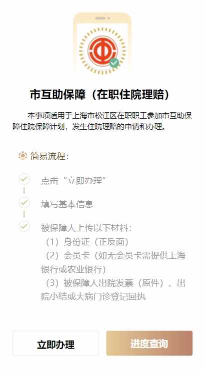 参加“上海市在职职工住院补充医疗互助保障计划”的市民注意啦,如需办理“住院理赔”,不必再跑线下办事点,打开随申办市民云app,在“松江区旗舰店”首页即可在线办理。