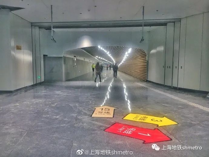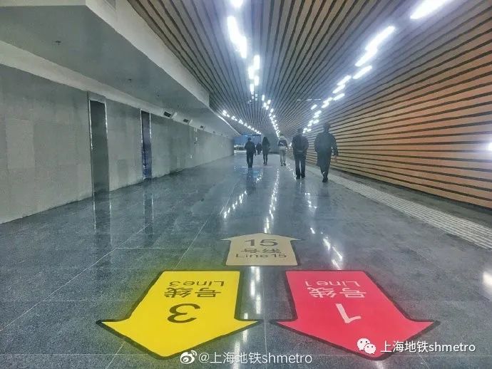 乘客到达1号线、3号线上海南站站厅后,跟随导向或地贴,穿过与1号线换乘的通道,到达换乘大厅,继续穿过15号线换乘通道即可到达15号线站厅。