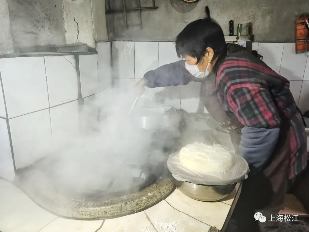 因为手艺正宗、用料实在,沈光辉、封榴英夫妇家的蒸糕总是供不应求。老两口都已经年过七旬,儿女心疼他们,闲下来的时候会过来帮忙。封榴英告诉小松,“家里做糕已经几十年了,现在年纪大了,儿女都不许他们在做,可是想到现在做的人越来越少了,这种原汁原味的蒸糕很难吃到,自己力所能及,有多少力气就做多少糕点,让乡邻朋友们在春节能吃上这口传统的松江味道。”