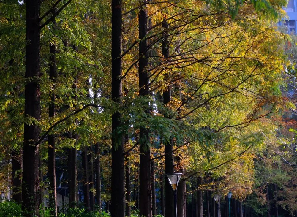 甘泉公园植有香樟、银杏、悬铃木、合欢、