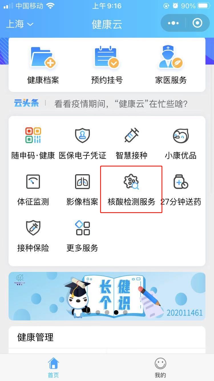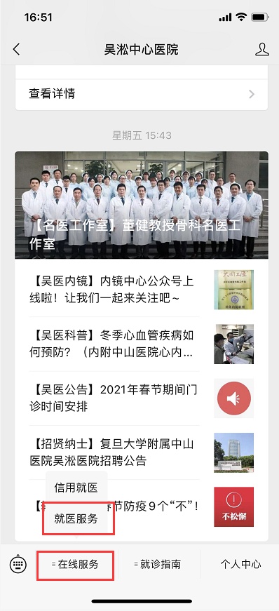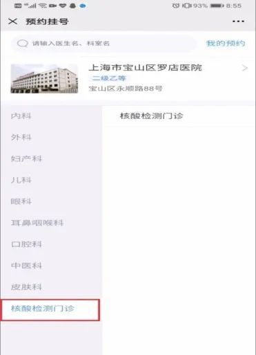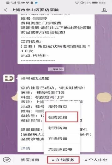 进入公众号,点击菜单栏“在线服务”中的“在线预约”,点击“核酸检测门诊”。