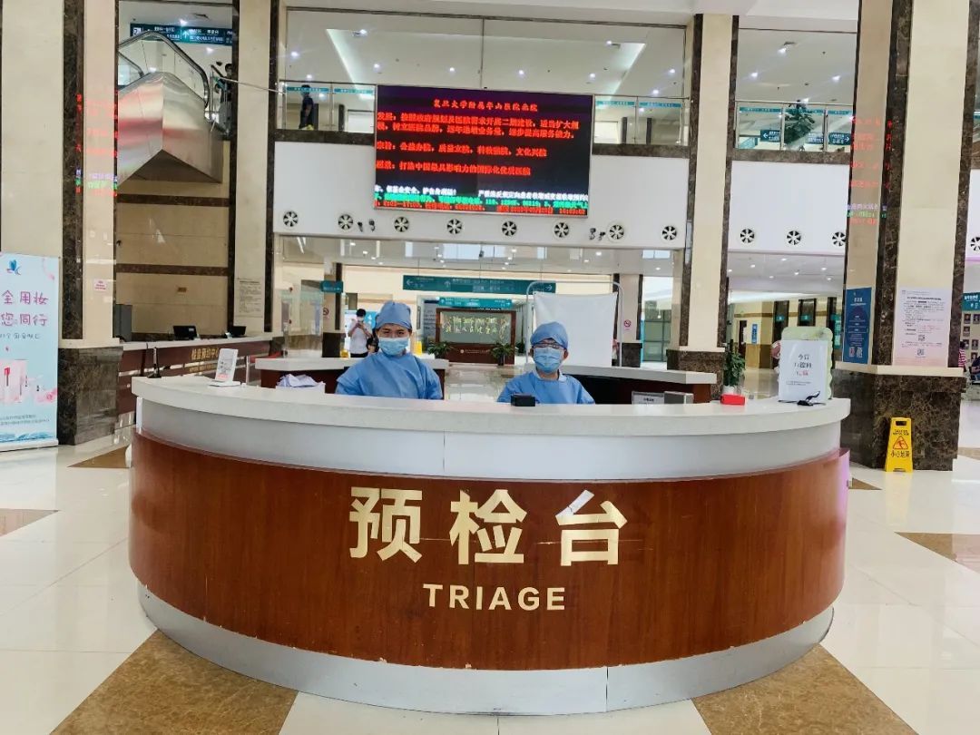 在门诊大厅预检台,告知工作人员需要进行核酸检测。