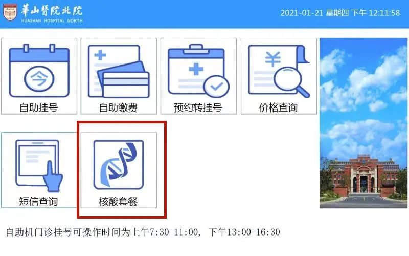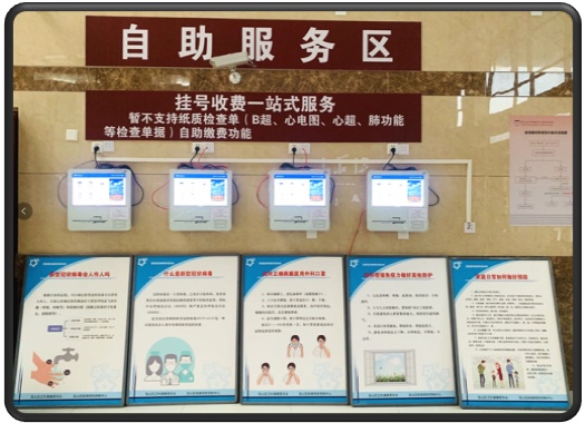门诊一楼、二楼、三楼的自助挂号机进行选择和缴费。
