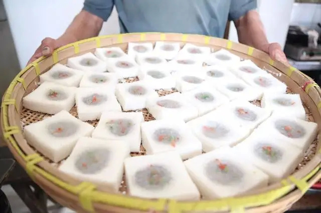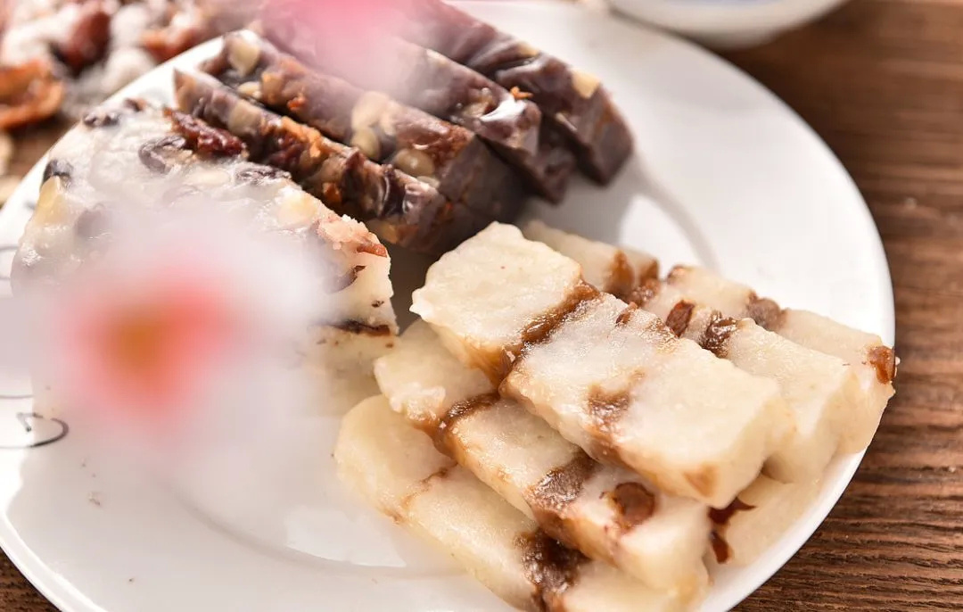 每到逢年过节,条头糕总是人气十足,大家忘不了的,还是这种老味道。糯米粉糅合细沙,做成长条状。有点像北方的驴打滚,造型又有一丢丢像北京的芸豆卷,但表和皮都是不同的原料做成的,条头糕的外皮是用黏米粉和糯米粉混合制成的,是糍粑的口感,外皮里揉进了豆沙,香甜软糯的,还常常淋上桂花蜜,味道绝对令人赞不绝口。