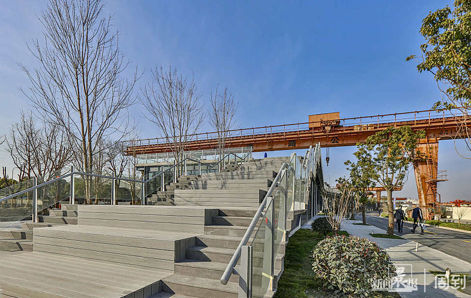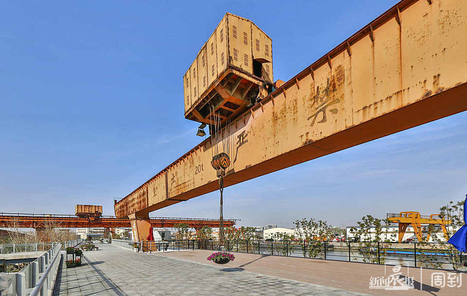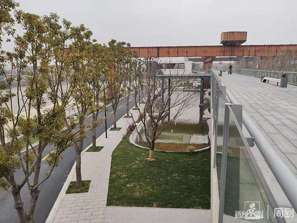 园内的工业风痕迹不止这一处。在蕰藻浜岸边,记者看到了一些码头墩子。据介绍,它们曾见证了交运码头繁忙的历史。如今,墩子上方的起重机已经拆除,留下来的墩子上可以放置装饰性装置。