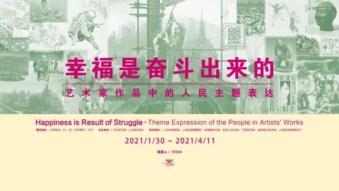 在位于中华艺术宫(上海美术馆)0米层的5500平米十个展区中,遴选自馆藏新中国以来几代艺术家的600余件作品,以及借展自中国美术馆、湖北美术馆、上海中国画院、刘海粟美术馆、上海油画雕塑院、张充仁纪念馆、丁聪美术馆等机构以及艺术家个人自藏的部分重要展品,共同组成本次“幸福是奋斗出来的——艺术家作品中的人民主题表达”展的六大单元主题。