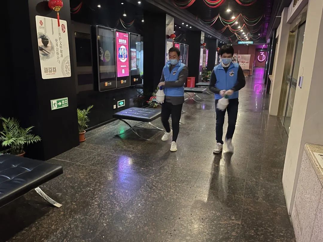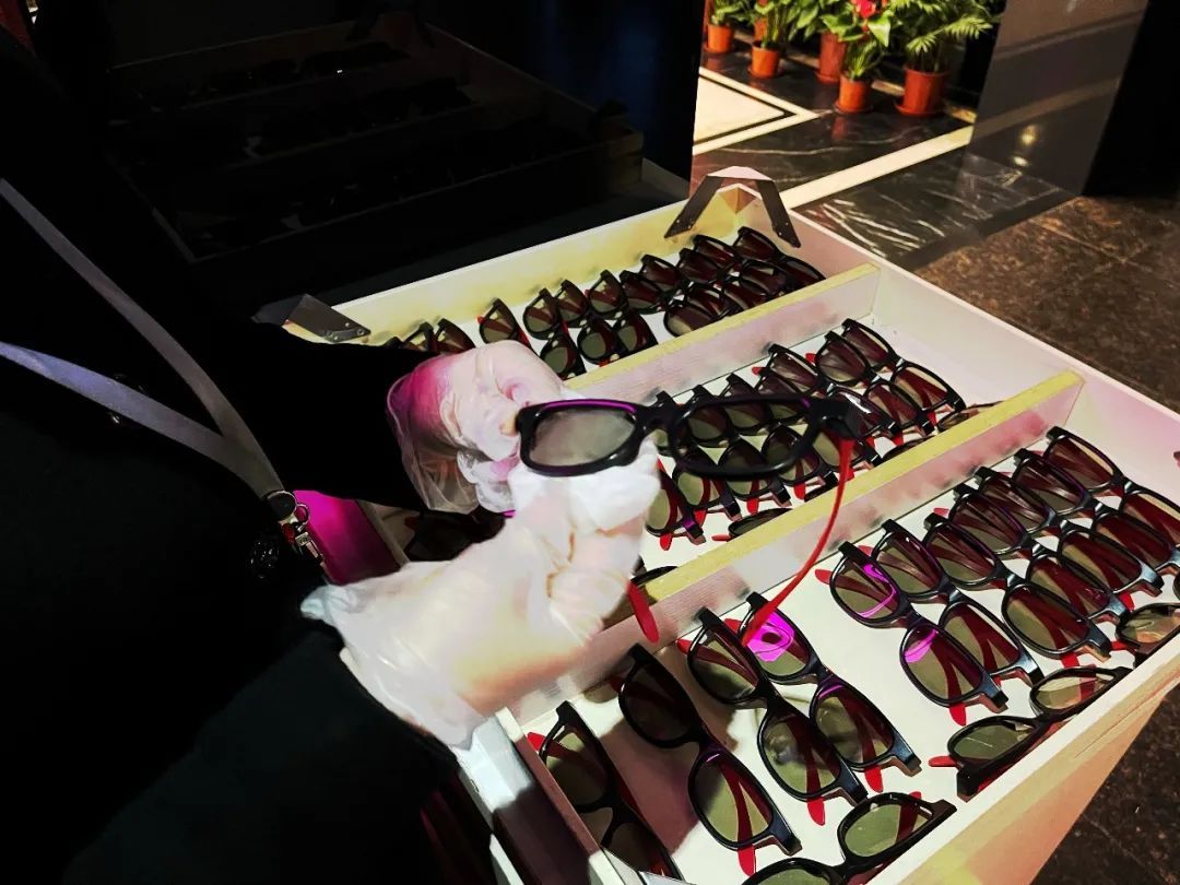 每场电影放映结束后,工作人员会对影厅座椅扶手、3d眼镜等观众直接接触物品进行消毒;大堂、影厅、卫生间、走廊、疏散通道等公共区域,每日不少于2次喷雾消毒;对取票机、公共区域座椅、卫生间等重点区域,每日不少于5次擦拭消毒。