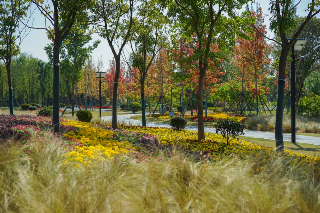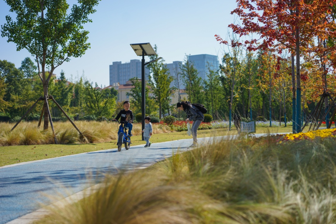 银都路绿道的雨水花园,引入“海绵城市”理念