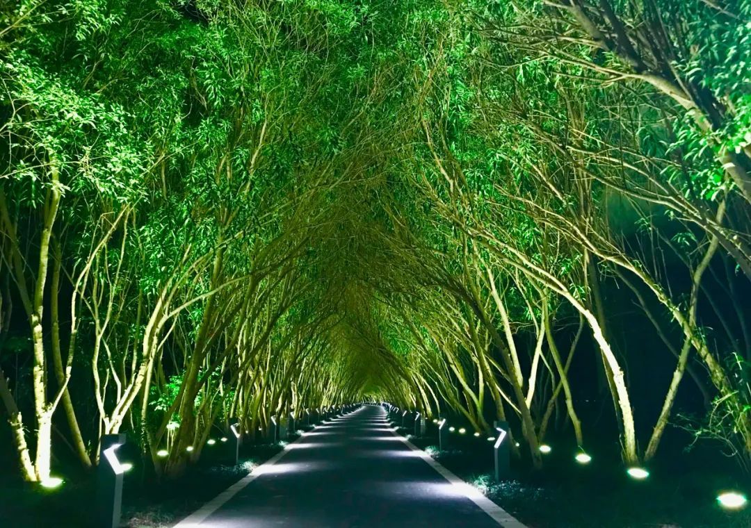 增加照明系统,多种灯光精心设计搭配组合,营造美丽夜景,延长了绿道的开放时间,提升了绿道的服务功能