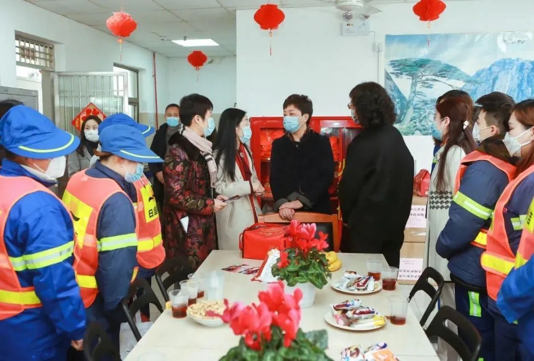 2月7日上午,徐汇区妇联主席、党组书记陈华带队走访区环卫职工之家,与大家亲切交流,并送上新春慰问品。