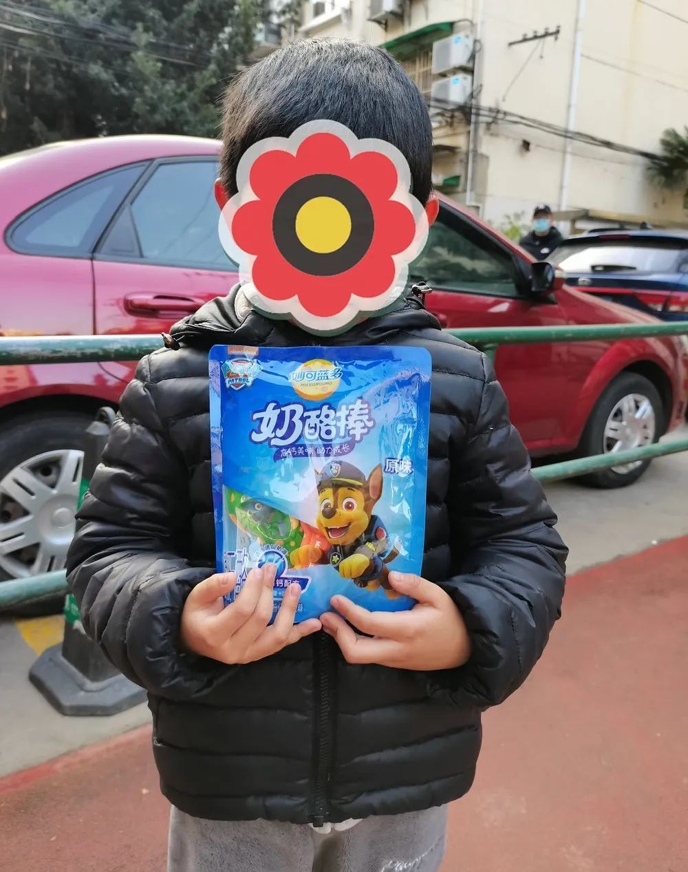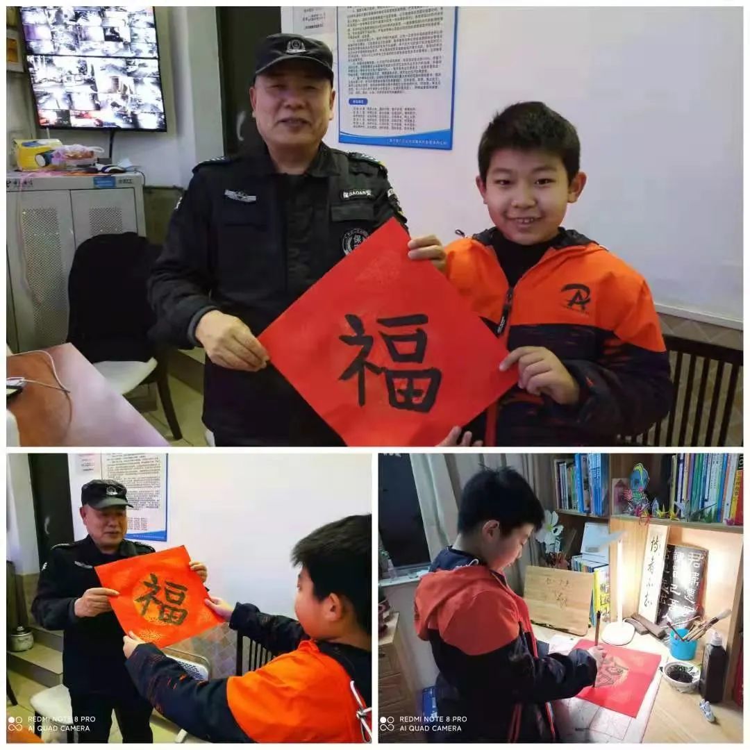 2月3日康健玉兰园小朋友写“福”字送祝福给社区保安。