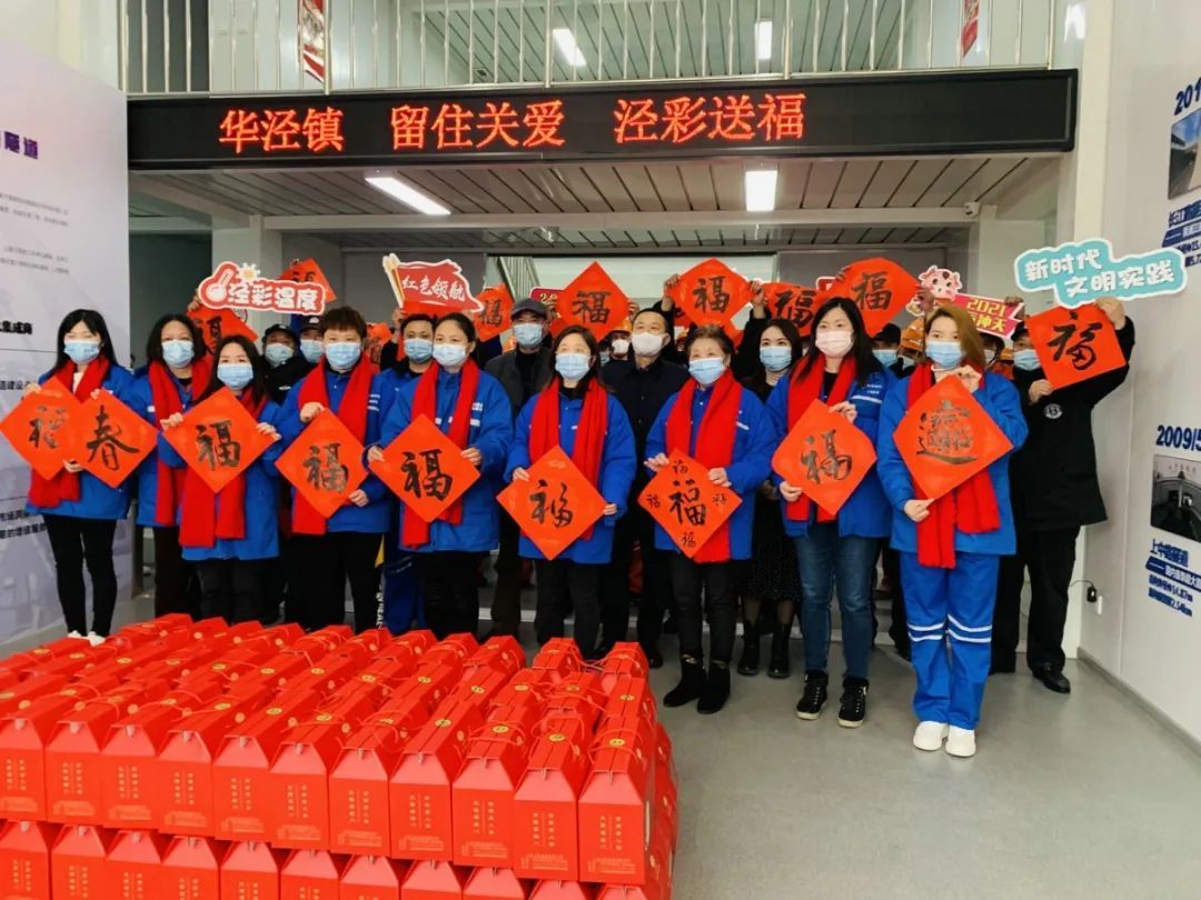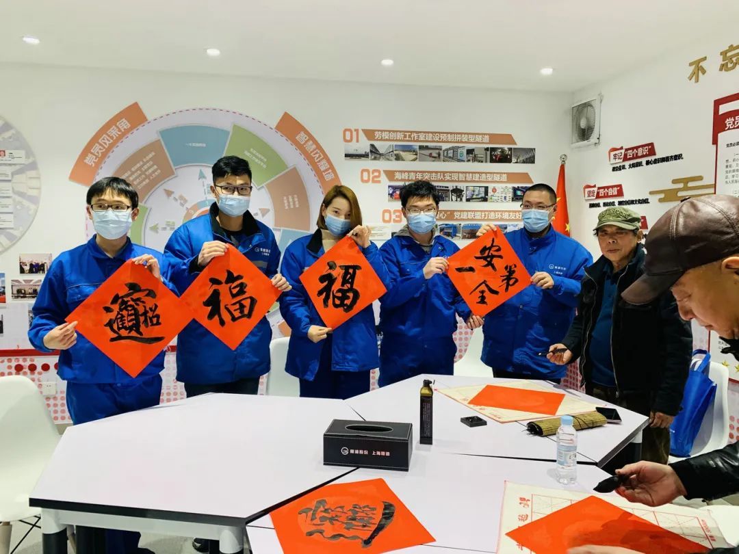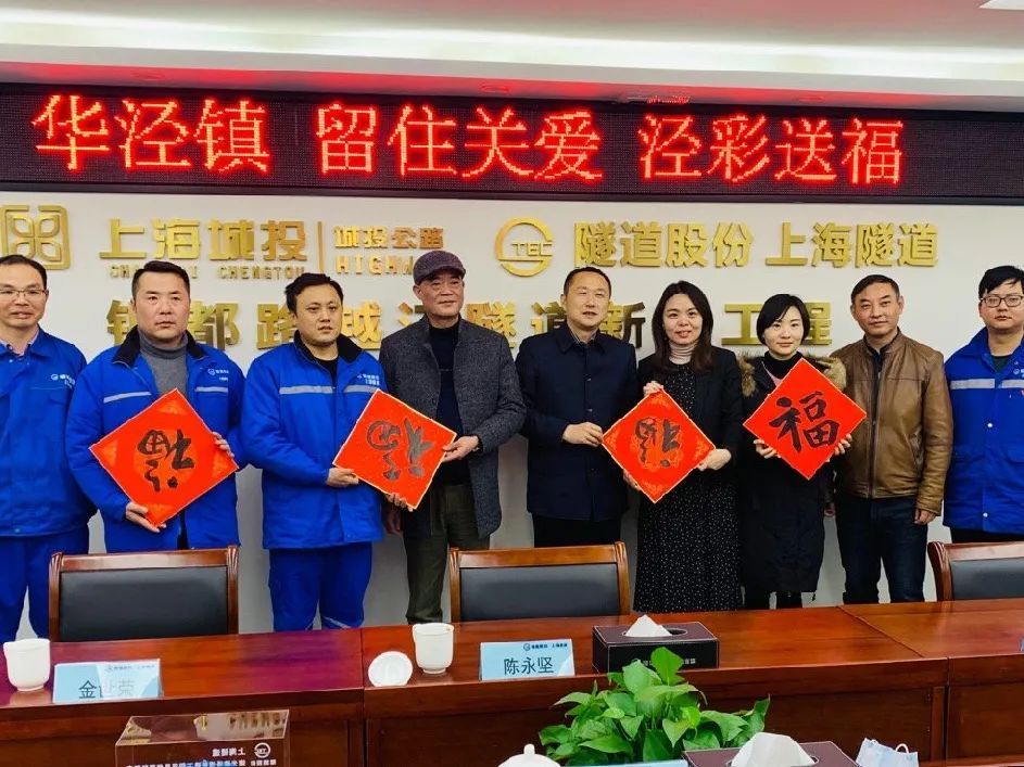 2月5日华泾镇镇长、副镇长以及相关科室领导今日来到银都路越江隧道工程工地开展了“留住关爱 泾彩送福”活动,慰问春节不离沪的工作人员,送上由华泾镇各个居民区妇女之家的巾帼志愿者手工编织的红围巾,并由书画爱好者现场写福字送给大家,感谢大家的辛勤付出并致以新春的祝福。