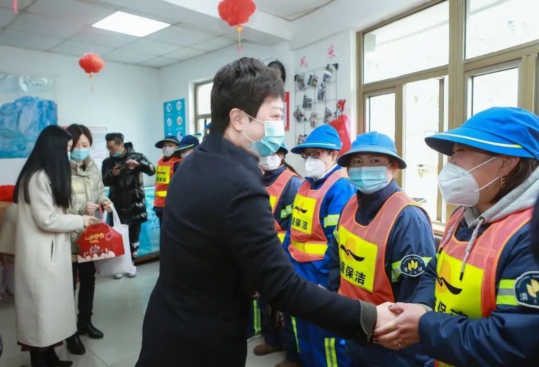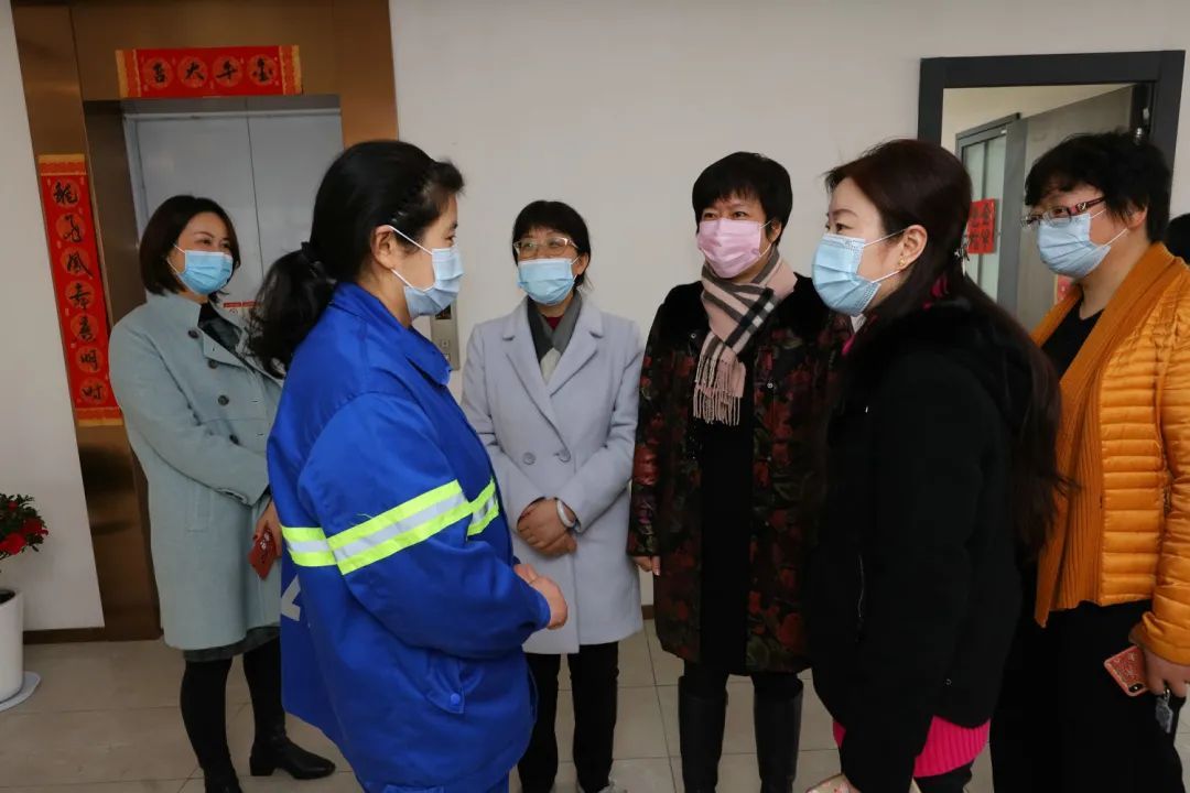 2月10日上午,上海市妇联党组书记马列坚,副主席翁文磊来到上海日盛环境保洁服务有限公司武康路女子清道班,听取稳岗留工工作情况介绍,与留沪班组成员亲切交流,感谢大家响应号召,坚守岗位,并送上新春慰问品。区委常委、宣传部部长吕晓慧,区妇联主席、党组书记陈华,区绿化市容局局长、党组书记王缨陪同慰问。