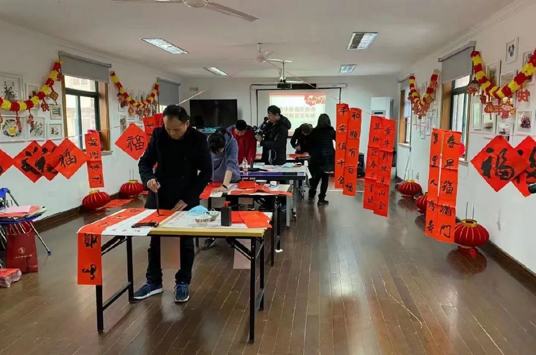 2月5日上海市青年书法家协会主席卢新元等一批书法爱好者来到徐家汇街道乐山二三村居委开展了“金牛纳福迎新春 翰墨飘香添年味”写春联、送福送乐现场赠送活动。乐山二三村新文明实践站也邀请社区各类志愿者代表一起参与社区挂灯笼、贴福字等系列迎春活动,居民的喜悦之情洋溢在脸上,浓浓的年味增加了大家对社区的认同。此次送福送乐活动后续还将继续赠送给部分留沪过年的外来人员以及社区居民。