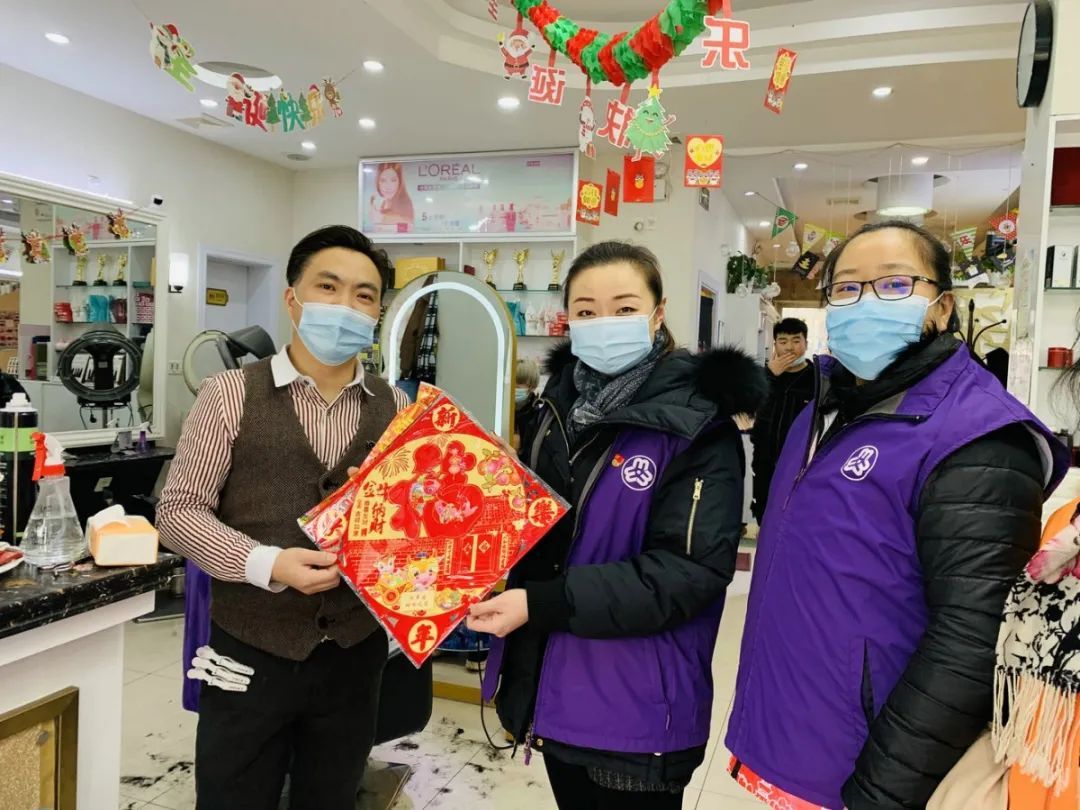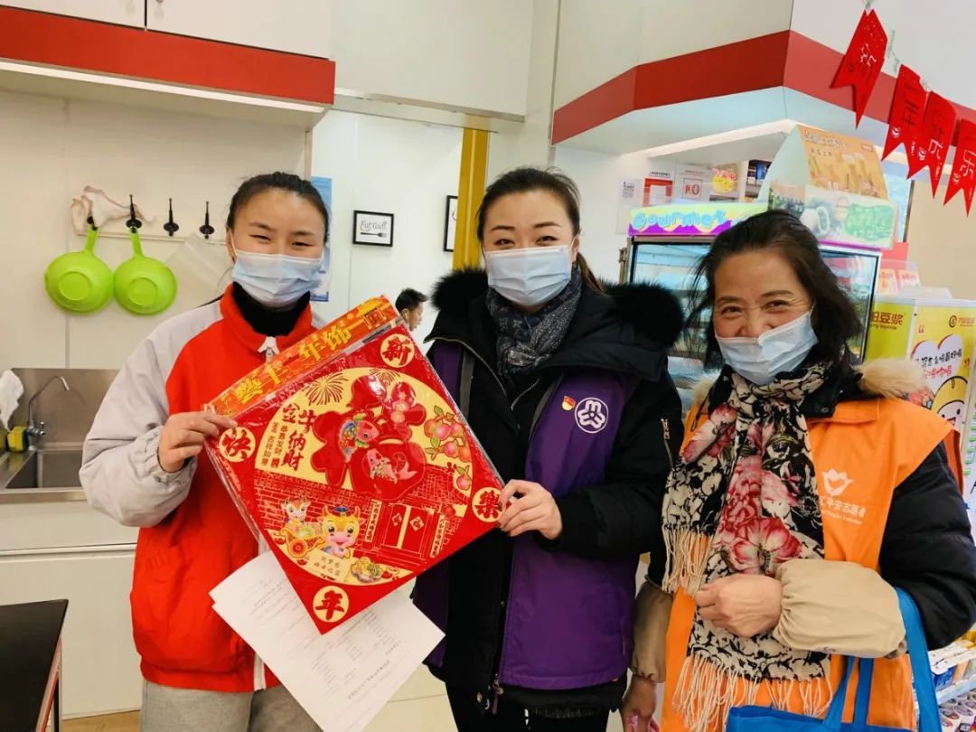 1月28日华欣家园居民区妇联执委结合社区防疫工作,排摸沿街商铺中居住在华欣家园的外来务工人员离沪返沪情况,并为商铺送上“福”字,祝福大家新年快乐、生意兴隆,同时感谢对社区工作的理解与支持。