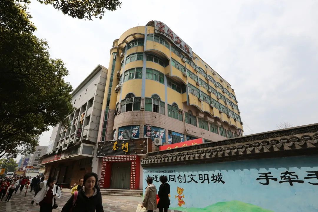 位于岳阳中山中路黑鱼弄西侧的这幢四层建筑,就是老松江人口中常常念叨的“老金门”,更多的时候,被称为“人民剧场”或“人民电影院”。