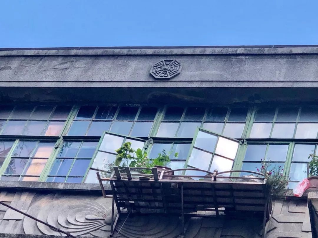 建筑的南面有大玻璃窗采光,冬季日照充足,抬头望去,还可以看到窗户下的中式元素花纹,以及八卦镜图案。