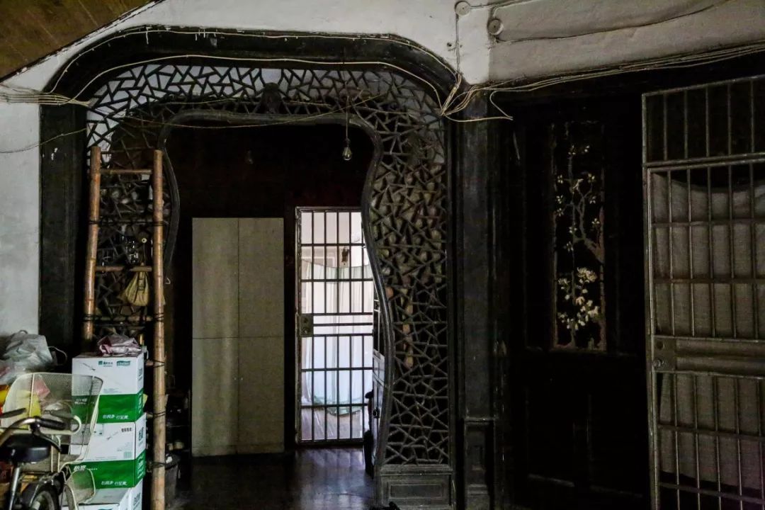 室内门窗都有木刻浮雕,主要内门还镶嵌贝骨浮雕,东侧内室门罩是一檀木镂空挂落,充满古朴风韵。