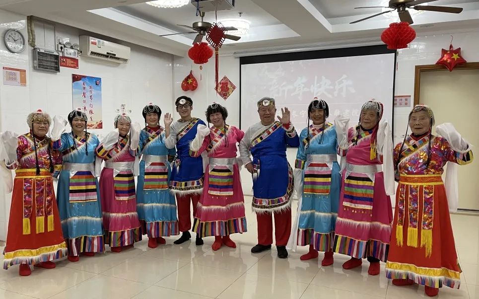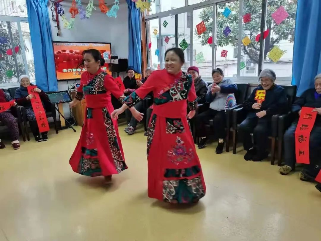 诗情画意的七彩云南是上海结对帮扶的对口省市之一,万宏在养老机构成立了“红河嫂”就业基地,全力支持沪滇对口帮扶工作,天山敬老院的两位来自云南的护理员带来了极具当地特色的民族舞蹈《六门合脚》,仿佛让大家置身于彩云之南的最深处。