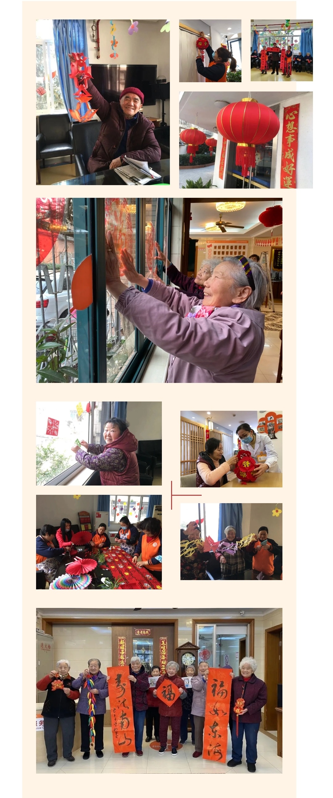 除了线上春晚,万宏旗下各家养老院早早就开展了装饰活动,让浓浓的年味满溢每家养老院,并在保证老人安全的情况下举办一系列迎春主题活动,让老人在院里同样感受新年的喜庆,享受到比家里还热闹的过节气氛。